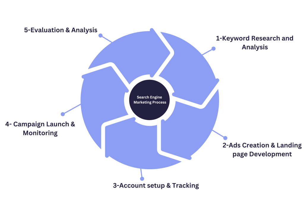 To surpass competitors, our search engine marketing agency adheres to a systematic approach in search advertising: